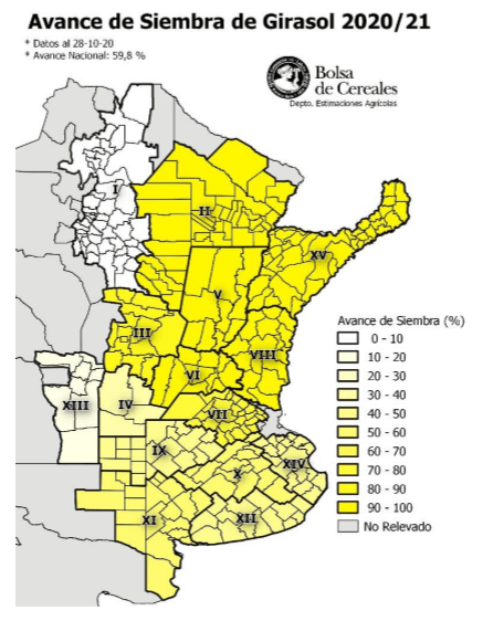 En relación al girasol ya se cubrió el 59,8% de las 1,4 millones de hectáreas proyectadas para la campaña en curso, donde la siembra “cobró fluidez en sectores de Buenos Aires y La Pampa”, afirma el Panorama Agrícola Semanal.