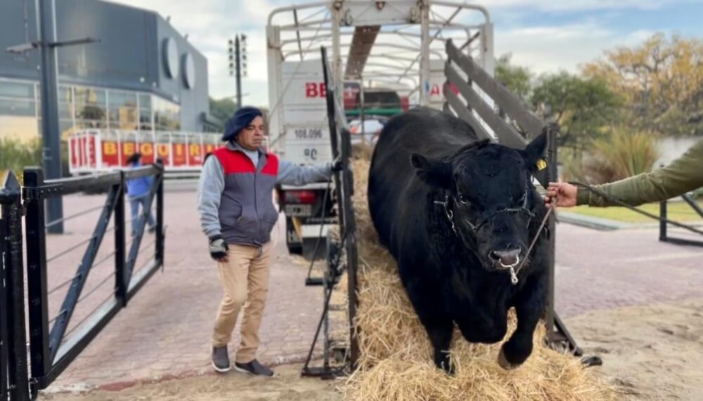 “Al que madruga…”: el toro “Salvador”, el primero en llegar a la “Expo del Centenario Angus”